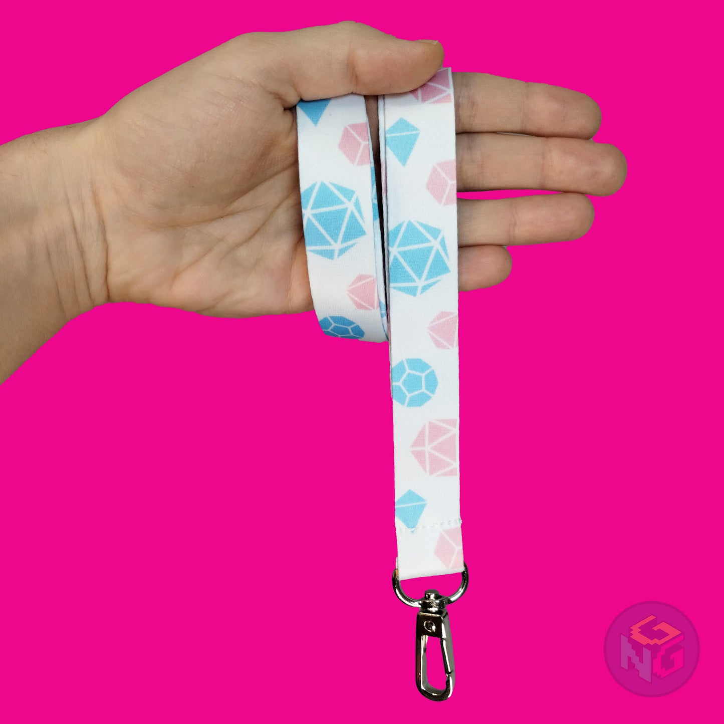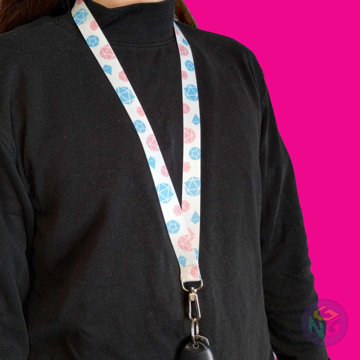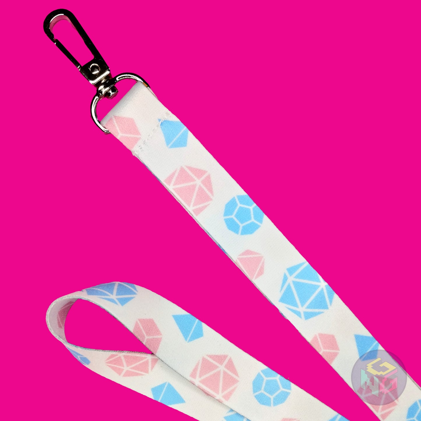 Keep your convention badge, keys, or ID close at hand with this transgender pride dice lanyard! It’s a standard 2cm wide and 90cm long in smooth nylon, making it easy and comfortable to wear for a day of gaming. Makes a great gift for your party members and DM. No need to roll the dice—this lanyard is a guaranteed win!
